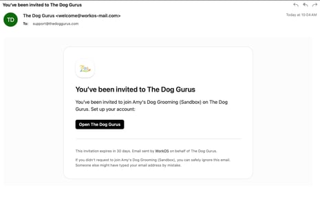 Open the email with the subject line “You’ve been invited to The Dog Gurus” and click the black "Open The Dog Gurus" button.