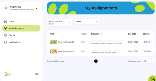 Where can I view all of my assigned courses? Where can I view all my assigned courses? Click on the "My Assignments" tab in the left menu to view assigned learning plans and track progress.